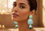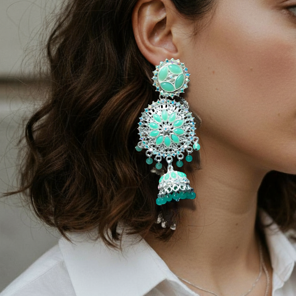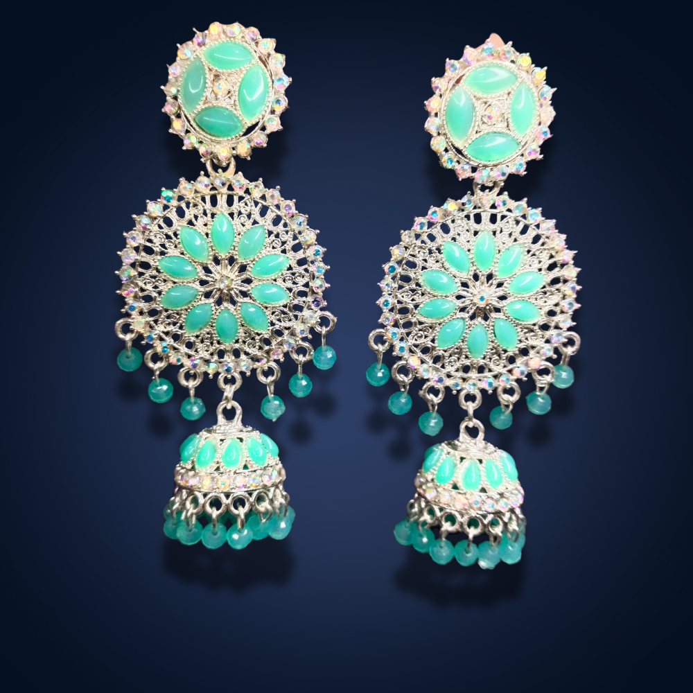 BLUE FLOWER HEAVY WORK DESIGN DROP DOWN EARRINGS