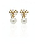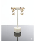Experience sophisticated elegance with these SILVER and plan with flolar statement earrings. Crafted with a luminous large round pearl as the centerpiece, each earring features a stunning floral-inspired arrangement above, showcasing smaller pearls interspersed with dazzling clear stones for a radiant finish. The gold setting adds warmth and luxury, perfectly complementing both modern and classic styles.
