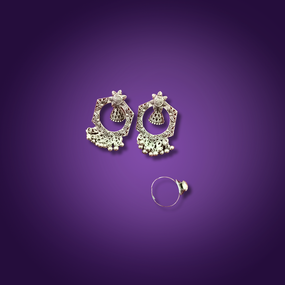 DIAMOND WITH STONE AND PLAIN STEEL A.D EARRINGS