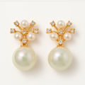 Experience sophisticated elegance with these exquisite gold and pearl statement earrings. Crafted with a luminous large round pearl as the centerpiece, each earring features a stunning floral-inspired arrangement above, showcasing smaller pearls interspersed with dazzling clear stones for a radiant finish. The gold setting adds warmth and luxury, perfectly complementing both modern and classic styles.