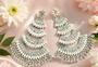 WHITE FLOWER HEAVY WORK DESIGN DROP DOWN WITH PEARS