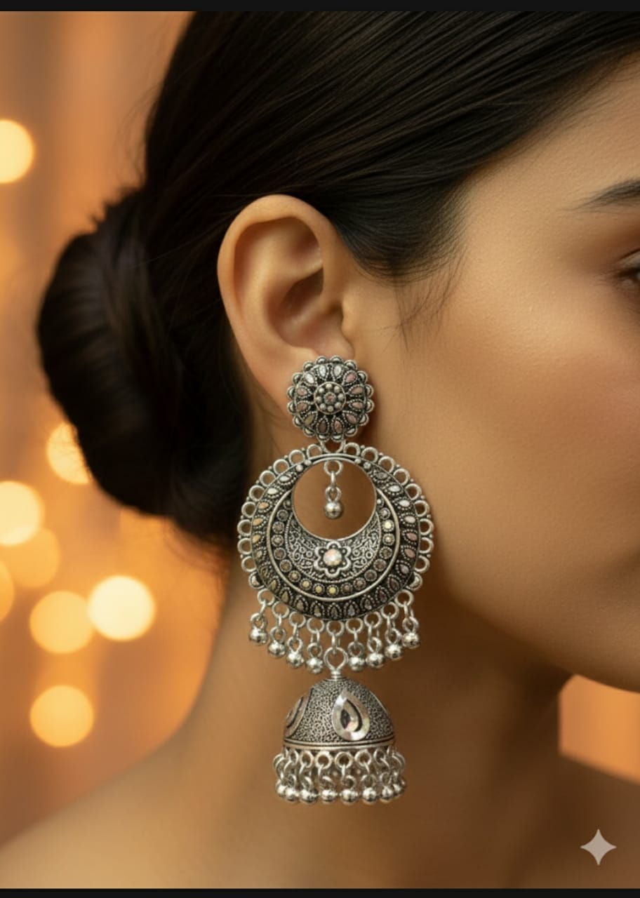 OXIDIZED RAIN DROP HEAVY WORK DESIGN DROP DOWN WITH PEARS