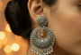 Experience sophisticated elegance with these exquisit SILVER OXIDIZED and pearl with flolar statement earrings. Crafted with a luminous large round pearl as the centerpiece, each earring features a stunning floral-inspired arrangement above, showcasing smaller pearls interspersed with dazzling clear stones for a radiant finish. The gold setting adds warmth and luxury, perfectly complementing both modern and classic styles.